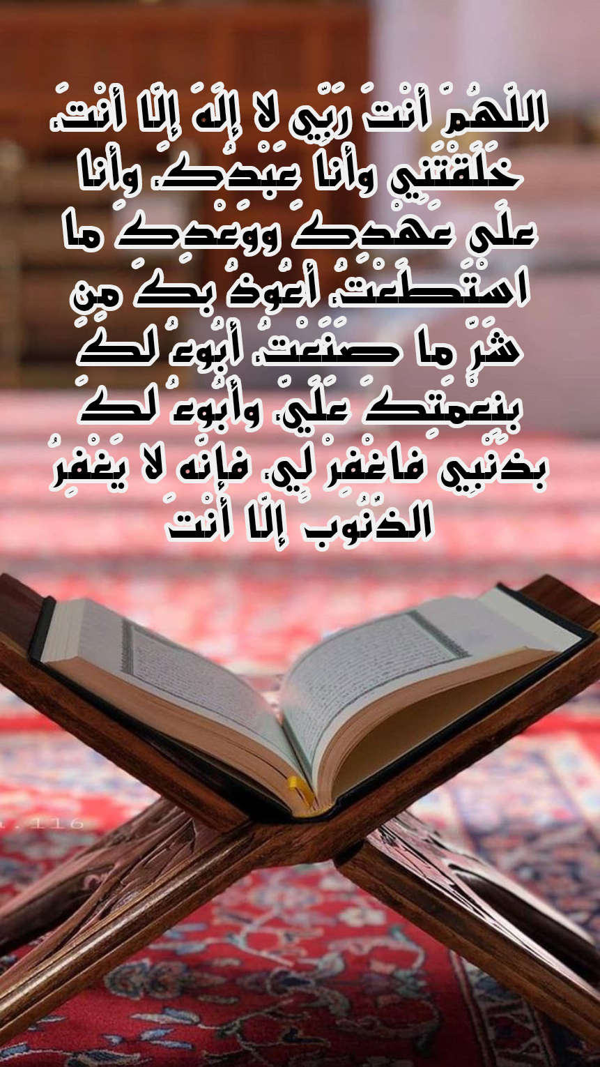 - اللهم لك أسلمت وبك آمنت وعليك اعتمدت وإليك أنبت وبك استنصرت وإليك فوضت أمري فاغفر لي ما قدمت وما أخرت وما أسررت وما أعلنت أنت مولاي ولا ملجأ لي سواك يا الله.