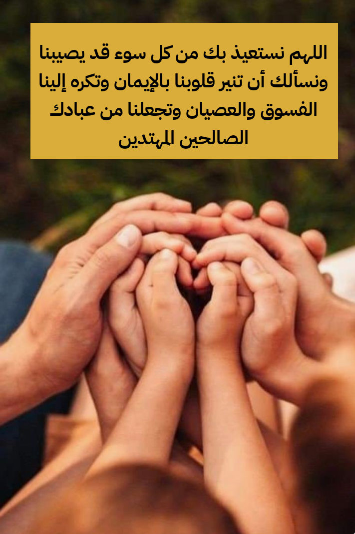 - يا عادل بين العباد ويا جابر المنكسرين اجعل أبنائي أهلاً لحمل الأمانة وخدمة أمتهم ووطنهم ولا تجعلهم ممن يسعون للمصالح الدنيوية الضيقة.