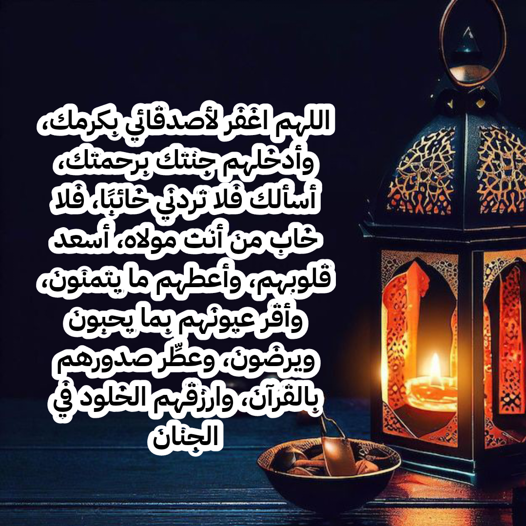 - اللهم بكرمك وجودك، صديقي الذي دلّني إلى الخير وحرص على هدايتي، أكرمه برحمتك واغمره ببركاتك وعفوك.