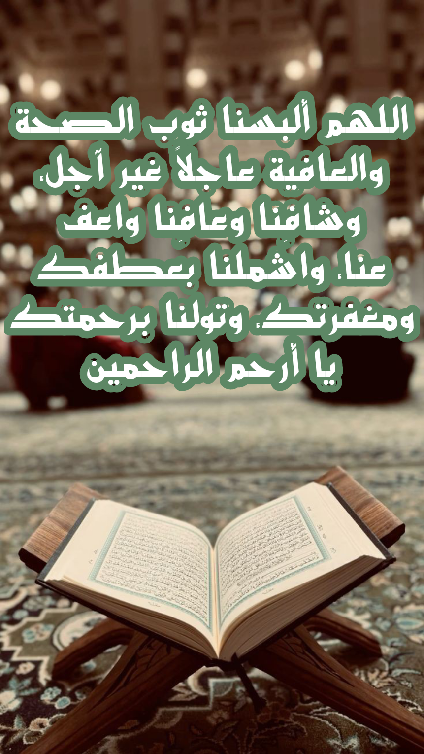 • اللهم في هذا اليوم العظيم نسألك أن تشفي كل مريض يرهقه المرض ويثقل قلبه بالعجز، يا رب أيده بقوتك ومنّ عليه بالصحة والعافية واجعل رحمتك تشمل كل جسده.