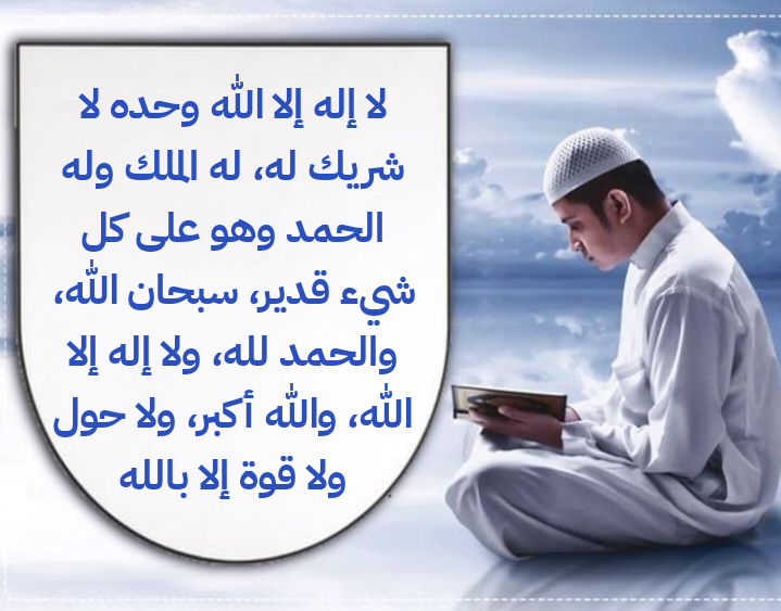 - من الأدعية الجميلة: لا إله إلا الله الملك الحقّ المبين لا إله إلّا الله العدل اليقين لا إله إلّا الله ربّنا وربّ آبائنا الأوّلين، سبحانك يا ربي إني كنت من الظالمين لا إله إلّا الله وحده لا شريك له له الملك وله الحمد يحيي ويميت وهو حيٌّ لا يموت وبيده الخير وإليه المصير وهو على كل شيء قدير ، لا إله إلّا الله إقراراً بربوبيّته، سبحان الله خضوعاً لعظمته ولا حول ولا قوّة إلّا بالله العليّ العظيم.