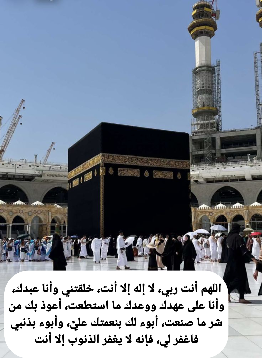 - اللهم أنت ربي لا إله إلا أنت خلقتني وأنا عبدك أدعوك يا الله وأقر بربوبيتك أنك الذي أنعمت عليّ وأديت عهدك بأفضل النعم وأكرمتني بحياتك يا أكرم الأكرمين أعوذ برحمتك من شر ما صنعت وبجهلي وغفلتي يا غفور يا رحيم أعترف بذنبي ورجائي أن تغفر لي كل تقصير فليس لي سواك يغفر الذنب ويستر العيب يا الله يا ملك السموات والأرض لك الحمد ولك الملك وأنت على كل شيء قدير.