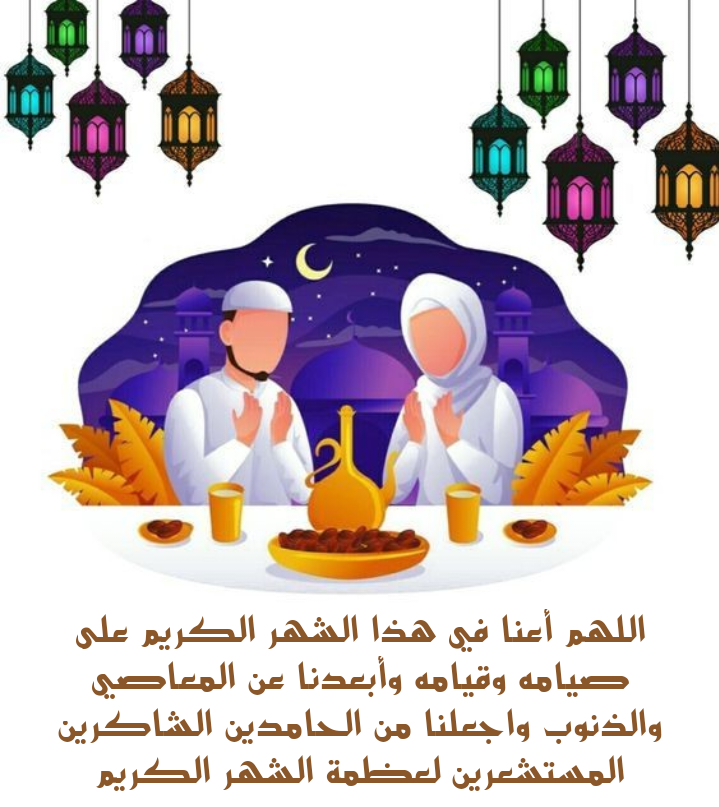 - 🌙 اللهم أعني فيه على صيامه وقيامه وجنِّبني فيه الوقوع في الذنوب والمعاصي ووفِّقني فيه لدوام ذكرك وشكرك واهدني إلى طريقك المستقيم يا من يهدي الحائرين.