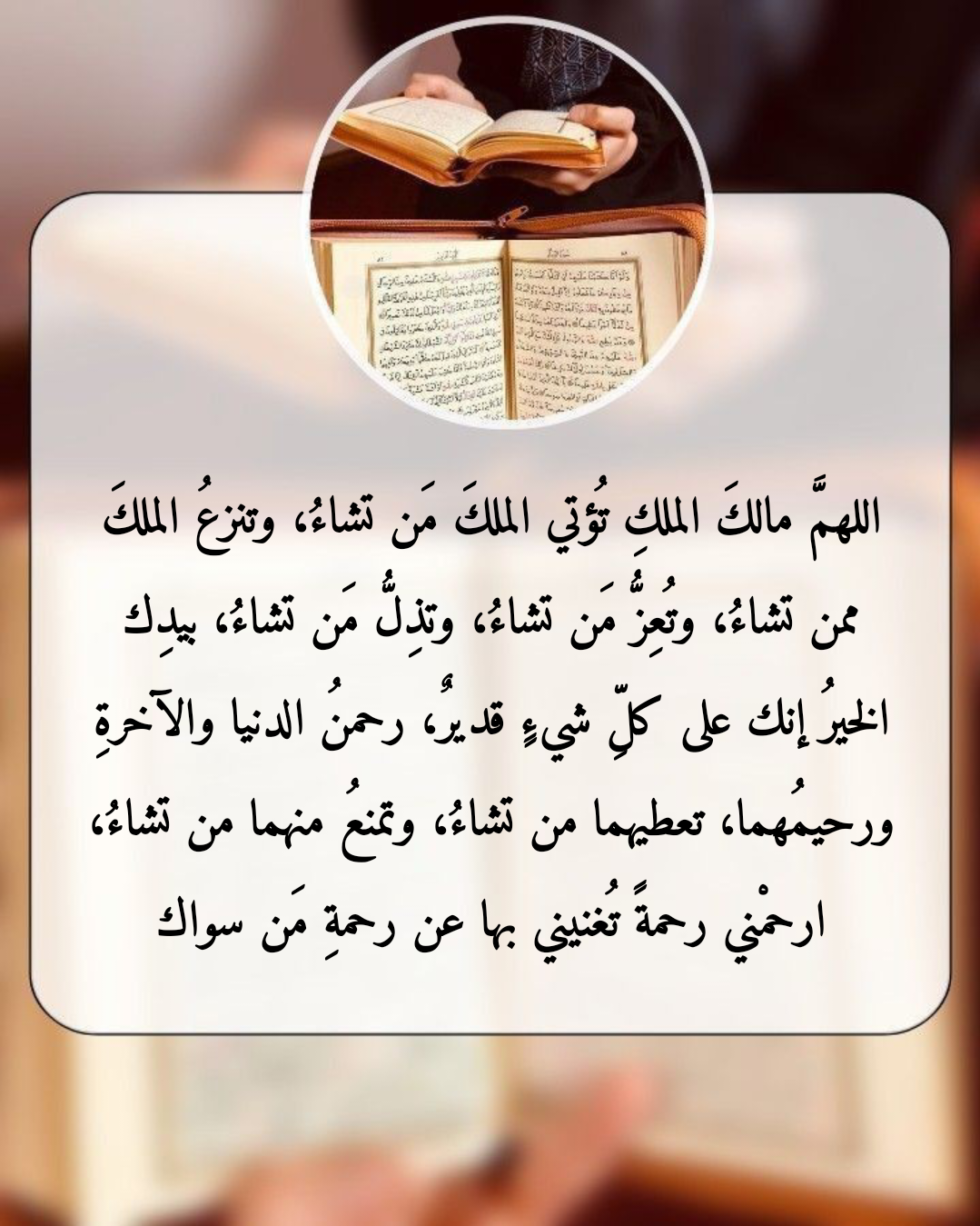 - اللهم انصر الإسلام وأعز المسلمين وارفع بفضلك راية الحق والدين اللهم يا من خلقت الإنسان وأحكمت ميزان العدل نسألك أن تجعلنا من الذاكرين الشاكرين وهب لنا من لدنك رحمة ووفقنا لما تحبه وترضاه.