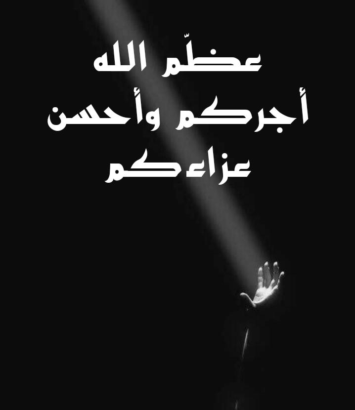 - عظّم الله أجركم ولا حول ولا قوة إلا بالله وإنا لله وإنا إليه راجعون ونسأل الله أن يغفر لفقيدكم ويرزقه جنان الخلود مع الأبرار والصالحين وأن يلقّنه الإجابة عند السؤال ويُيسر له الرحمة والمغفرة فهو سبحانه العفو الغفور حيث قال في كتابه العزيز: “وَرَحْمَتِي وَسِعَتْ كُلَّ شَيْءٍ”، ونحثكم على الدعاء له بالرحمة والمغفرة ونسأل الله أن يجعل قبره نورًا وراحة وأن يكتبه من أهل الرضا والقبول في الدار الآخرة.