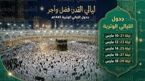 جدول الليالي الوترية في العشر الأواخر من رمضان 1447 ومواعيد صلاة التهجد بالمسجد الحرام