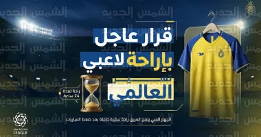 أصدر الجهاز الفني لنادي النصر السعودي قراراً عاجلاً بمنح لاعبي الفريق الأول لكرة القدم راحة من التدريبات الجماعية لمدة 24 ساعة، وذلك في أعقاب الإعلان الرسمي عن تأجيل المواجهة التي كانت مقررة أمام فريق الوصل الإماراتي ضمن منافسات دوري أبطال آسيا 2، يأتي هذا القرار في إطار إدارة الجهد البدني للاعبين لضمان استمرار المنافسة على لقب الدوري المحلي.