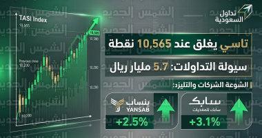 | إغلاق مؤشر “تاسي” | 10,565.74 نقطة |