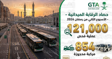 أعلنت الهيئة العامة للنقل اليوم الثلاثاء 3 مارس 2026 (الموافق 14 رمضان 1447هـ)، عن تكثيف جهودها الرقابية الميدانية لضمان انسيابية حركة نقل المعتمرين والمصلين خلال ذروة الموسم، وأوضحت الهيئة أن الفرق التفتيشية أتمت بنجاح فحص أكثر من 121 ألف وسيلة نقل خلال الأسبوع الثاني من الشهر الفضيل، مؤكدة التزامها برفع جودة الخدمات المقدمة لضيوف الرحمن وتطبيق الأنظمة بحق المخالفين.