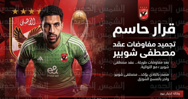 أكد مصدر مسؤول من داخل النادي الأهلي أن الإدارة قررت تجميد مفاوضات تجديد عقد الحارس “مصطفى أحمد شوبير” بشكل مؤقت، وعلى الرغم من القناعة التامة بمستواه الفني والبدني المتطور الذي قدمه خلال الفترة الماضية، إلا أن النادي لم يفتح باب المفاوضات الرسمية حتى تاريخ اليوم 5-3-2026، مفضلاً تأجيل كافة الملفات الإدارية لما بعد انتهاء المهام الأفريقية العاجلة.