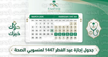 أصدرت وزارة الصحة السعودية تعميماً رسمياً يحدد المواعيد التفصيلية لإجازة عيد الفطر المبارك لعام 1447هـ (2026م) لكافة منسوبيها في مختلف المناطق، وذلك وفقاً للائحة التنفيذية للموارد البشرية في الخدمة المدنية وأنظمة العمل المتبعة في المملكة.
